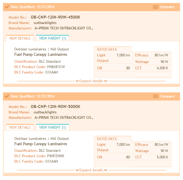 Our Wall pcak ,Canopy,Highbay Light have DLC,UL,CE,RoHS approved.You can find something you want and download it.